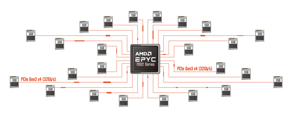 TS-h2490FU, 2. Nesil AMD EPYC™ 7002 serisi işlemcilerle (Roma) donatılmıştır. En son 7nm işlem teknolojisine sahip "Zen 2" mimarisine dayanarak, SSD başına 32 Gb/s ayrılmış bant genişliği için 128 adede kadar PCIe I/O hattı sağlanır. Daha yüksek güvenilirlik için tek bitli bellek hatalarını algılayan ve düzelten DDR4 ECC belleğe sahip TS-h2490FU, yoğun bellek kullanan iş yüklerini karşılamak için 8 kanallı modüller ve 16 Uzun DIMM yuvası sağlar. Muazzam bilgi işlem gücü ve çoklu görev yetenekleri sergileyen TS-h2490FU, HPC, sanallaştırma ve hibrit/çoklu bulut uygulamalarında tavizsiz performans talepleri için ideal seçimdir.